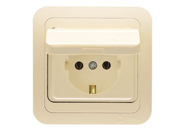 MAKEL Розетка 1мест с крышкой с п з к кремовая с кремовой вставкой Makel 25009