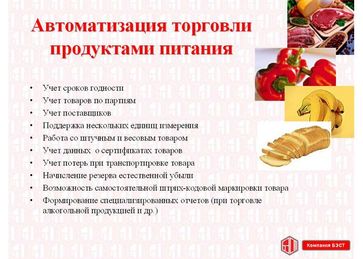- Взаимодействие со специализированным торговым оборудованием: (сканеры: Metrologic, Zebex (ручные, лазерные, светодиодные, многоплоскостные, встраиваемые)¸ весы (DIGI, CAS - с печатью этикеток) терминалы сбора данных (Сipher, Symbol) и пр. ).