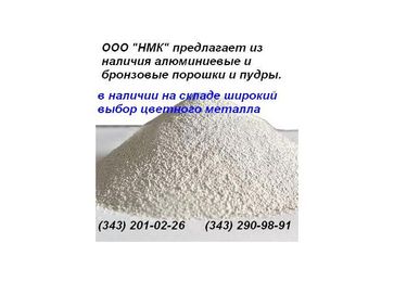 Пудра бронзовая для красок БПК ТУ 48-21-721-81. Пудра бронзовая для офсетной печати БПО ТУ 48-21-5-72. Пудра бронзовая для полиграфической и карандашной промышленности БПП-1 ТУ 48-21-150-72. Порошок алюминиевый вторичный АПВ ТУ 48-5-152-78. Порошок алюминиевый вторичный пассивированный АПВ-П ТУ1790-46652423-01-99. Порошок алюминиевый ПА-1,ПА-2,ПА-3,ПА-4 ГОСТ 6058-73 (вд). Информацию по наличию, ценам, условиям и срокам поставки узнавайте. тел. (343) 201-02-26, 290-98-91, факс: (343) 214-98-09. e-mail: nmk-ural@mail.ru icq 550252603