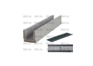 Интернет-магазин строительных материалов предлагает лотки водоотводные бетонные DN100 класса С250 (нагрузка до 2500 кг) - Е600 (нагрузка до 6000 кг) в комплекте с чугунными, стальными решетками. Ширина лотков от 140-160 мм, высота от 80-230 мм, длина 1000 мм. Для организации системы линейного поверхностного отведения воды.