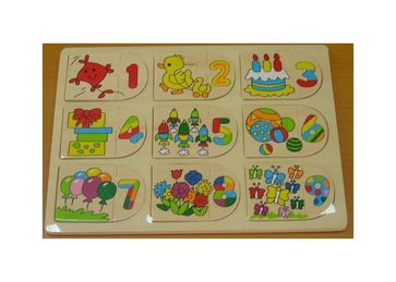 Эта игрушка является и пазлом и рамкой-вкладышем. Яркие красочные животные очень заинтересуют малыша и малыш сможет получить навыки счета. Размер деревянного планшета - 30 х 22 см None