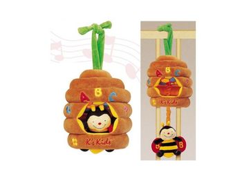 Мягкая музыкальная игрушка - подвеска.Может крепиться на детской кроватке или в любом другом месте. Веселая, красивая пчелка с шуршащими крылышками вылетает из домика-улья, если малыш потянет за нее. А если потом отпустить пчелку - "Полетай, пчелка" - она возвращается обратно в свой домик под красивую мелодию, которая звучит из улья. Как только пчелка залетит в домик - она выглянет из окошка и улыбается Вашему малышу. Игрушка из высококачественных материалов, приятная на ощупь.Размер улья - домика - 15 х 18 см.Pазмер самой пчелки - 12 х 13 см.Развиваются тактильные ощущения и цветовое восприятие. None