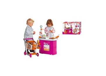 Супермаркет с тележкой и аксессуарами фирмы Smoby электронный супермаркет с кассой, весами, тележкой для покупок, игрушечными деньгами и продуктами. Специальные отделения для овощей и фруктов, полки, на которых можно расставить товар, а так же имитирующий работу настоящего считыватель штрих-кода с подсветкой и звуками делают игру в магазин совсем правдоподобной.В набор Супермаркет входит тележка для покупок стойка продавца супермаркета и аксессуары, поэтому с этим наборам будет весело играть нескольким малышам, разыгрывая сценки, подсмотренные в настоящем супермаркете. В комплекте игрушечные овощи, хлеб, коробочки и баночки с продуктами – всё как в настоящем магазине!Изготовлен из высококачественной пластмассы, нет мелких деталей. None