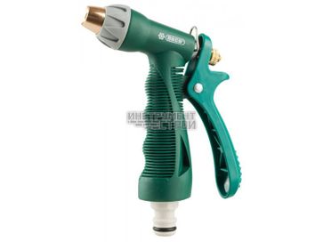 Пистолет распылитель RACO "BEST VALUE", металлический корпус, регулируемый, широко применяется при направленном поливе растений при подключении их с помощью соединителя к водопроводному шлангу. Надежный металлический корпус придает изделию дополнительную прочность.Мягкое ребристое покрытие из термопластичной резины обеспечивает удобный хват даже влажной рукой и защищает от проскальзывания. Высокоточное латунное сопло с протектором из термопластичной резины позволяет плавно регулировать распыление водяной струи. Общие характеристикиТипПистолет распылительКол-во режимов1МатериалРезина/Металл None Есть доставка.