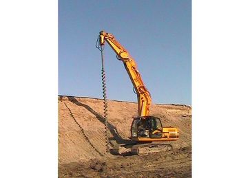Привод HDA1 – идеален для использования в качестве привода сухого бурения – ямобура (поставка шнэков для мягких и каменистых почв возможна также). В основе привода специальный планетарный редуктор с гидромотором. Шестигранный вал гранью 50мм. Поток 60лмин. Давление 225 бар. Вес 50кг. Обвязка позволяет универсально крепить привод как к миниэкскаватору 1-2 тонны, так и в собственном варианте. Такой привод очень удобен в случае многофункциональности миниэкскаватора – может быть использован для бурения ям при шнэке, также может быть использован для выкорчевывания пней, расщепления больших древен при установке дровокольной насадки. Возможность поставок: привода для буровых от 1кНм до 65кНм, ротаторы, гидростанции для управления приводом, шнэковые буры для земляных и каменистых почв диам до 2000мм, насадка-дровокол, разные типы обвязки для экскаваторов до 35 тонн, для мобильных систем, под МБУ и пр. Сроки поставки от 2 недель, цены специальные для производителей оборудования.