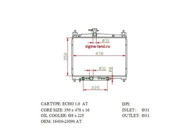 Закажите Радиатор охлаждения двигателя TOYOTA ECHO 99-05г у компании Радиаторы для иномарок в Екатеринбурге на портале Alloy:
