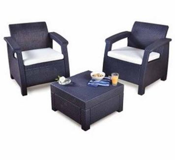 Два кресла и журнальный столик. Идеальный компактный размер для установки на балконах и небольших террасах.Цвет коричневый, подушки бежевыеРазмеры:Кресло 757079 смСтол 775742 смУпаковка: 1208042 смВес: 20кг None