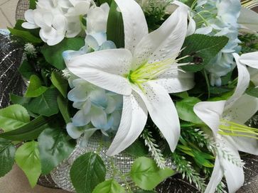 Закажите Букет-венок на похороны «Белые лилии» у компании Чароит Декор в Екатеринбурге на портале Alloy: