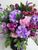 Композиция состоит из роз, гортензии, кустовой хризантемы, ирисов, веток мирта и березы.Размеры: основание 23 см, высота 80 см.