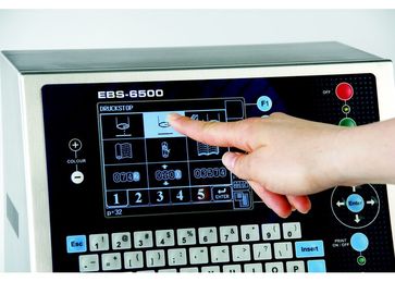 EBS 6500 сочетает в себе новый революционный дизайн и потрясающий функционал промышленного каплеструйного принтера: Тачскрин дисплей и плёночная клавиатура с повышенной стойкостью к стиранию и агрессивным жидкостям, позволяют управлять маркиратором так, как удобно пользователю.