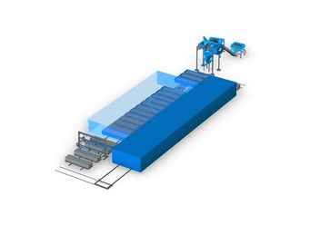 Линия состоит из неподвижно стоящего смесителя ёмкостью 450 литров, блока дозаторов с электронным весовым терминалом, передвижных форм, рельсовых путей, толкателей и механической резки.