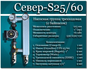 - Север-S25 60 Насосная группа трехходовая (с байпасом) в каталоге Другое отопительное оборудование в Екатеринбурге;