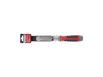 Долото-стамеска Matrix 24757 используется для зачистки пазов, снятия фасок в столярных работах. Полотно выполнено из хромованадиевой стали высокого качества, что повышает прочность и срок службы инструмента. Обрезиненная рукоятка обеспечивает надежный хват, предотвращает выскальзывание инструмента. Металлический затыльник позволяет работать с ударным инструментом. Внешний вид товара, его комплектация, а также основные технические характеристики могут изменяться производителем без предварительных уведомлений. Данное описание носит справочно-ознакомительный характер и не может служить основанием для претензий. Общие характеристикиТипПлоскаяШирина рабочей части22 ммМатериал рабочей частиХромованадиевая стальРукояткаТрехкомпонентнаяВес и габаритыВес0,23 кгДополнительная информацияБрендMatrixАртикул24757 None Есть доставка.