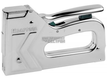 Подходит для крепления к пластику, дереву, ДВП таких материалов, как кожа, ткань, холст, утеплитель, пленка. Усиленный металлический корпус обеспечивает надежность и длительный срок службы. Пружина пистолета пластинчатая, благодаря чему сила удара возрастает на 50%, а отдача, напротив, снижается. Расходный материал для пистолета – штифты, гвозди, скобы. Скобы: тип 140, зеленые, размер 6-14 мм; Гвозди: тип 300, размер – 16 мм; Штифты: тип 500, размер – 16 мм. Общие характеристикиТипСтеплерМакс. размер скобы14 ммМин. размер скобы6 ммТип скоб140 300 500 None Есть доставка.