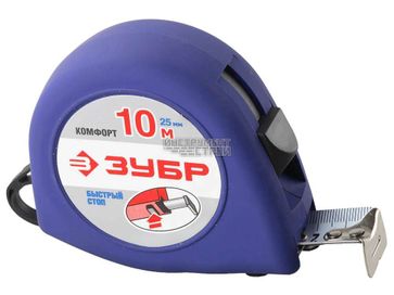 - Рулетка, корпус с резиновым напылением Зубр 34016-10 (10мх25мм) по выгодной цене 234 р. руб.;