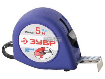 - Рулетка, корпус с резиновым напылением Зубр "Комфорт" 34016-5 (5мх19мм) по выгодной цене 114 р. руб.;