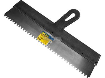 - Шпатель зубчатый нержавеющий, с пластмассовой ручкой Dexx 10089-45-06 (зуб 6х6мм, 450мм) по выгодной цене 111 р. руб.;