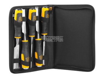 Стамески JCB JCS009 (двухкомпонентные рукоятки, CrV cталь, 6 предм.: 6,12,19,25,32мм, чехол)