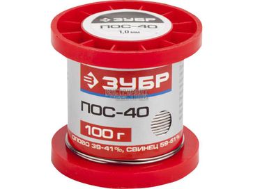 - Припой, ПОС 40, проволока Зубр 55451-100-10 (100г, 1мм) в каталоге Флюсы, припой в Екатеринбурге;