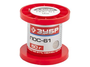 - Припой ПОС 61, проволока Зубр 55450-050-10 (50г, 1мм) в каталоге Флюсы, припой в Екатеринбурге;