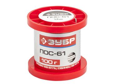 - Припой ПОС 61, проволока Зубр 55450-100-15 (100г, 1,5мм) в каталоге Флюсы, припой в Екатеринбурге;