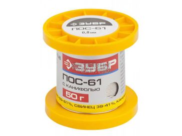 - Припой ПОС 61, трубка с канифолью Зубр 55450-050-08C (50г, 0,8мм) по выгодной цене 324 р. руб.;