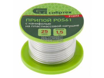 - Припой с канифолью Сибртех 913372 (D 1,5 мм, 25 г, POS61, пласт. катушка) в каталоге Флюсы, припой в Екатеринбурге;