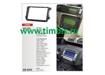 Переходная рамка CARAV 08-009 (SKODA Fabia 2007+; Octavia 2007+; SuperB 2008+; Yety 2009+; Roomster 2006+/VOLKSWAGEN Caddy 2004+; EOS, Sagitar 2006+; Golf VI, Passat CC, Scirocco, Tiguan 2008+; Passat B7, Transporter T5, Jetta VI 2010+; Golf V 2005-2008; ... None