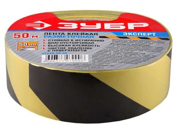 - Лента клейкая разметочная, цвет желто-черный Зубр "Эксперт" 12249-50-50 (50мм х 50м) по выгодной цене 598 р. руб.;