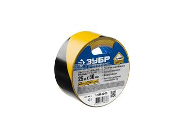 - Лента клейкая разметочная ЗУБР Профессионал 12249-50-25 (черно-желтый, 50 мм х 25 м) по выгодной цене 170 р. руб.;