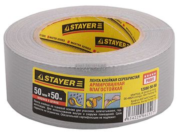 - Лента клейкая,армированная, влагостойкая, металлик Stayer "Master" 12080-50-50 (48 мм х 45 м) в каталоге Клейкая упаковочная лента в Екатеринбурге;
