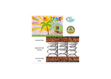 Ортопедический матрац на основе блока зависимых пружин,Хорошо поддерживает и фиксирует положение тела, Пружинный блок скрыт в оболочке из кокосового волокна, которое придаёт матрацу необходимую жёсткость и позволяет телу младенца "дышать".Чехол выполнен из цветной бязевой ткани с рисунком,Чехол легко снимать и чистить Размер: 120 Х 60 см None