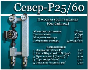 - Север-P25 60 Насосная группа прямая (без байпаса) по выгодной цене 13 360 р. руб.;