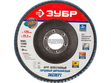 - Круг шлифовальный лепестковый торцевой, тип КЛТ 1 Зубр 36596-125-60 (P60, 125 мм) в каталоге Круг, пруток в Екатеринбурге;