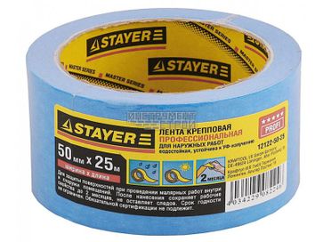 - Лента малярная Stayer Profi 12122-50-25 (креповая, водостойкая с УФ-защитой, 50 мм х 25 м) по выгодной цене 145 р. руб.;