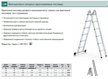 - Лестница комбинированная двухсекционная алюминиевая (Германия) в каталоге Лестницы строительные в Екатеринбурге;