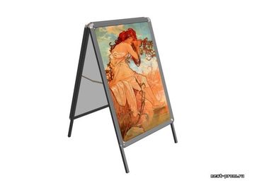 Данный вид продукции замечателен тем, что Вы без труда и больших затрат можете менять информационное поле. Все просто: отжали шторки, поменяли постер, зажали шторки по периметру поля. Материал:- каркас из трубы 20*20, цвет на выбор - полотно из оцинков...