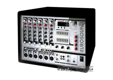 EUROSOUND FORCE-630активный микшерный пульт 2x250 Вт @ 4 Ом, 3 моно, 3 стерео, 6 предусил., МАСТЕР EQ, 32- бит. проц. эфф., 256 прогр. с 3-мя ячейк. памяти аомтоамт55555555