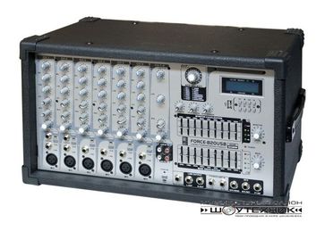 EUROSOUND FORCE-820USBактивный микшерный пульт 2x600 Вт @ 4 Ом, 2x300 Вт @8 Ом, 7 моно, 3 стерео, 9 предусил., МАСТЕР EQ, 24- бит. высококлассный процессор эффектов, 16 программ, встроенный MP3-проигрыватель аомтоамт55555555