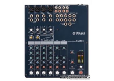 YAMAHA MG102Cмикшерный пульт со встроенным компрессором, 4 мик/лин входа, 2-4 лин стереовхода, инсерт x 4, 2xAUX, 3-полосный EQ, крепление к микрофонной стойке аомтоамт55555555