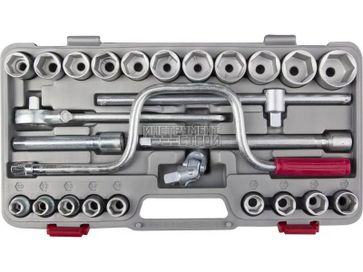 Набор НИЗ Шоферский инструмент № 4 2761-40 используется в монтажных работах. Предусмотрен пластиковый кейс для удобного хранения и транспортировки набора. Инструменты и головки выполнены из инструментальной стали, что увеличивает их прочность и срок службы, цинк защищает от коррозии. Комплектация Ключ трещоточный 6910-0296 ГОСТ 22402-77 (250мм/12.5мм) - 1 шт. Ключ 6910-0324 ГОСТ 25601-83 (300мм/12мм) с присоединительным квадратом (12.5мм) - 1 шт. Удлинитель 6910-0229 ГОСТ 25600-83 (125 мм) - 1 шт. Удлинитель 6910-0232 ГОСТ 25600-83 (250 мм) - 1 шт. Коловорот 6910-0352 ГОСТ 25602-83 - 1 шт. Шарнир 6910-0361 ГОСТ 25603-83 (73 мм) - 1 шт. Торцевая головка 7812-0483 ГОСТ 25604-83 (10 мм) - 1 шт. Торцевая головка 7812-0485 ГОСТ 25604-83 (12 мм) - 1 шт. Торцевая головка 7812-0486 ГОСТ 25604-83 (13 мм) - 1 шт. Торцевая головка 7812-0487 ГОСТ 25604-83 (14 мм) - 1 шт. Торцевая головка 7812-0488 ГОСТ 25604-83 (15 мм) - 1 шт. Торцевая головка 7812-0489 ГОСТ 25604-83 (16 мм) - 1 шт. Торцевая головка 7812-0491 ГОСТ 25604-83 (17 мм) - 1 шт. Торцевая головка 7812-0492 ГОСТ 25604-83 (18 мм) - 1 шт. Торцевая головка 7812-0493 ГОСТ 25604-83 (19 мм) - 1 шт. Торцевая головка 7812-0494 ГОСТ 25604-83 (20 мм) - 1 шт. Торцевая головка 7812-0495 ГОСТ 25604-83 (21 мм) - 1 шт. Торцевая головка 7812-0496 ГОСТ 25604-83 (22 мм) - 1 шт. Торцевая головка 7812-0497 ГОСТ 25604-83 (23 мм) - 1 шт. Торцевая головка 7812-0498 ГОСТ 25604-83 (24 мм) - 1 шт. Торцевая головка 7812-0499 ГОСТ 25604-83 (25 мм) - 1 шт. Торцевая головка 7812-0501 ГОСТ 25604-83 (26 мм) - 1 шт. Торцевая головка 7812-0502 ГОСТ 25604-83 (27 мм) - 1 шт. Торцевая головка