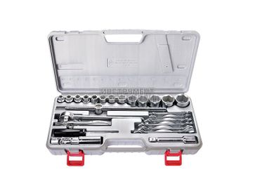 Набор инструментов в кейсе. Все инструменты изготовлены из инструментальной стали 40Х и оцинкованы. Комплектация: Торцевые головки (10, 11, 12, 13, 14, 15, 17, 19, 22, 24, 27, 30, 32 мм) - 13 шт Ключи рожковые (8 х 10, 10 х 12, 12 х 14, 13 х 15, 14 х 17, 17 х 19 мм) - 6 шт Трещоточный ключ - 1 шт Плоскогубцы - 1 шт Удлинитель 125 мм - 1 шт Удлинитель 250 мм - 1 шт Головка свечная 21 мм - 1 шт Отвертка - 1 шт Шарнир - 1 шт Общие характеристикиТипАвтомобильный None Есть доставка.