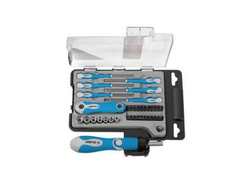 ЗУБР 25293-H41 - это набор инструментов из 41 предмета, которые используется для монтажных и точных работ. Стержни инструментов изготовлены из хромованадиевой стали, что обеспечивает надежность и долговечность. В набор входит реверсивно-рычажная отвертка и широкий ассортимент бит, переходников, имбусовых ключей, торцевых головок и отверток. С данным набором, который поставляется в удобном пластиковом кейсе, вы всегда будете иметь необходимый инструмент под рукой. Комплектация: Реверсивно-рычажная отвертка - 1 шт Переходник - 1 шт Торцевые головки - 7 шт Биты (PH1, PH2, PH3, PZ1, PZ2, PZ3, T10, T15, T20, T25, T27, T30, T40, H2, H3, H4, H5, SL5, SL6, SL7 ) - 20 шт Отвёртки (PH0, PH00, PH000, SL2.0, SL2.5, SL3.0) - 6 шт Ключи имбусовые (H2.0, H2.5, H3.0, H4.0, H5.0, H6.0) - 6 шт Общие характеристикиТипУниверсальный None Есть доставка.