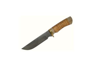 сталь х12 МФ - инструментальная легированная сталь сталь Х12МФ имеет плотность 7700 кг/м.куб. Инструментальная легированная сталь используется для изготовления режущего инструмента, а также штампового инструмента более ответственного назначения, чем из углеродистых инструментальных сталей. Нож укомплектован ножнами из натуральной кожи Рукоять орех-береста-латунь Длина ножа 240-280мм Клинок сталь Х12МФ Размеры клинка 140х31х2,2мм длина рукояти 116мм толщина рукояти 25мм None