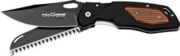 Нож FOX серии "Multihunter", складной, многофункциональный(нож,пила), черный, чехолДлина: общая - 20 см, клинок - 9 смСталь клинка - 440 сИз серии многофункциональных складных ножей Multi Hunter итальянской фирмы Fox предусматривают 2-3 отдельно достающихся лезвия: одно из которых классическое, второе - пила, 3 - шкуросъёмник. Лезвия выполнены из углеродистой стали и покрыты износостойким тефлоном, что продлевает срок их службы. Модель отличается конструктивной надёжностью, компактностью, удобством в применении. На обухе лезвий предусмотрены насечки предотвращающие скольжение. Все лезвия достаются одним лёгким движением большого пальца, за счёт предусмотренных в них отверстий. Рукоять ножей выполнена из анодированного авиационного алюминия, что придаёт ножам лёгкость. Два цвета рукоятия: чёрный и камуфляжный. К ножам прилагается нейлоновый чехол с поясным креплением для удобства ношения. Фирменная упаковка. Вес - 123 гр None