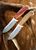 Нож FOX серии "Persian hunter", рукоять из красного/оливкогового дерева, чехол кожаДлина: общая - 23 см, клинок - 12 смСталь клинка - N690CoТуристические ножи серии Persian Hunter итальянской фирмы Fox. Эргономичный, функциональный нож с широким лезвием и клёпаными накладками на рукояти, выполненными из ценных древесных пород (оливковое, красное). Клинки ножей изготовлены из углеродистой нержавеющей стали. За счёт дополнения углерода является более твёрдым, дольше сохраняет качество заточки. Имеет петлю под карабин. На обухе имеются горизонтальные противоскользящие насечки под большой палец. Клинок имеет дизайнерское клеймо известного мастера Франческо Пачи. В комплекте к ножу прилагается кожаный чехол с поясной петлёй для удобства ношения. Фирменная упаковка. Вес - 179 гр None