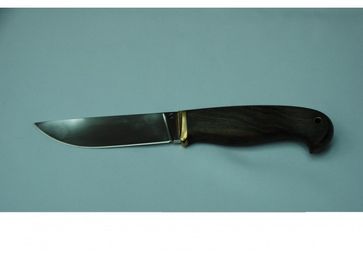 Технические характеристики:Общая длина ножа - 265 ммДлина клинка - 145 ммДлина рукояти - 120 ммШирина клинка - 27 ммШирина рукояти - 30 ммТолщина рукояти - 24 ммТолщина клинка 4 ммВес ножа - 160 грРукоять ножа - кап орехаГарда - бронзаКлинок - высоколигированная , кованая штамповая сталь - Х12МФ.Твердость клинка на обухе - 54-56 HRC, твердость клинка на режущей кромке - 59-60 HRC. Угол заточки режущей кромки - 13 градусов. Нож комплектуется ножнами из натуральной кожи коричневого цвета с мягким и подвижным подвесом. None