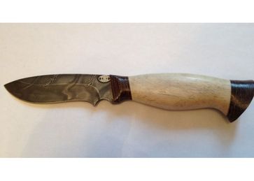 Клинок - композиционная марка стали У10А-7ХНМ (черный дамаск), количество слоев: 150 Теплая рукоять выполнена из ореха, легко чистится, водонепроницаемая. Гарда и тыльник изготовлены из текстолита.После использования нож необходимо промыть, протереть. Клинок покрыть силиконом или маслом.Комплектуется ножнами из натуральной кожи.Характеристики:Общая длина изделия: 210 ммДлина клинка: 79 ммНаибольшая ширина клинка: 25 ммНаибольшая толщина клинка: 3 ммТвердость клинка, HRC: 58-62 None