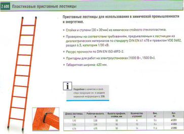 - Лестница диэлектрическая стеклопластиковая приставная (Германия) в каталоге Оборудование для электроснабжения в Екатеринбурге;