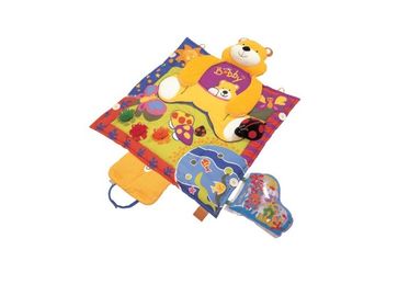 В комплект этого коврика входит безопасное зеркало – божья коровка, 3 разноцветные игрушки и мягкий аквариум для игрушечных рыбок, который нужно наполнить водой. Коврик преобразуется в удобную кроватку для малыша и компактную сумку для мамы. None